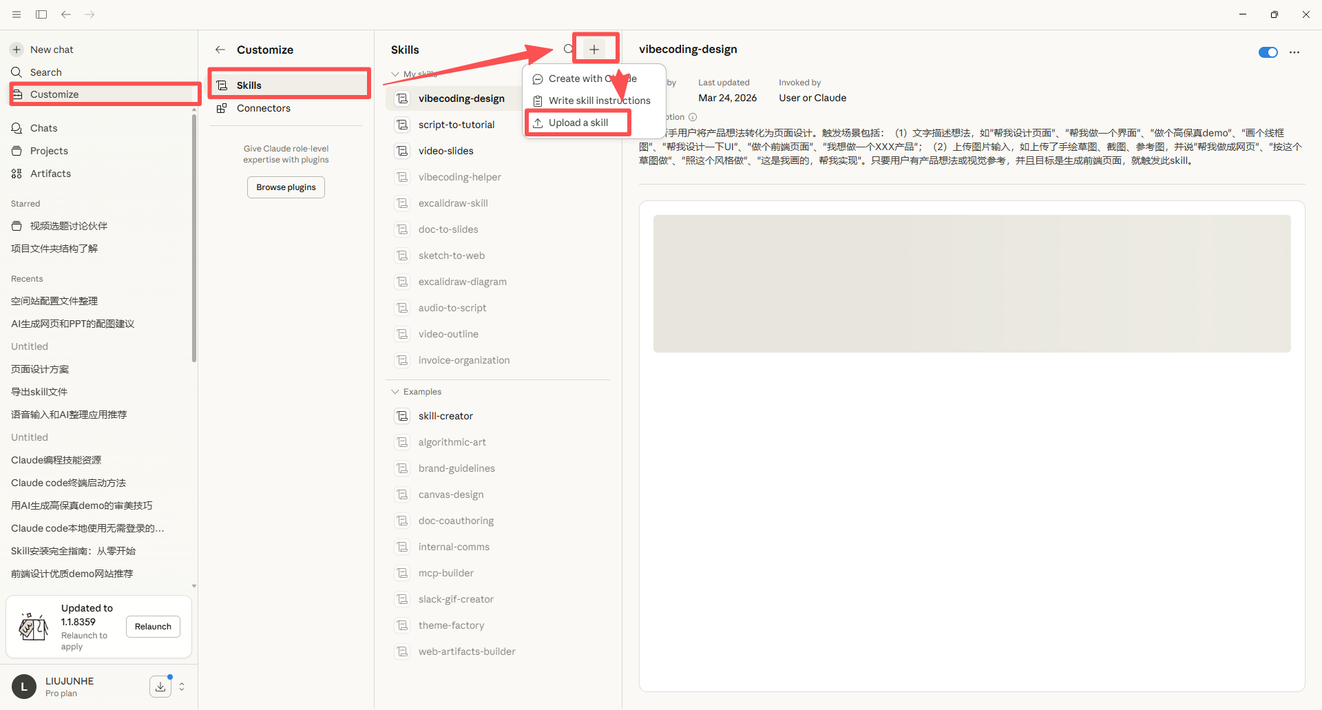 如果你用 Cowork 或 Claude 网页端,官方提供的 Skill 都在这里,包括 pptx、pdf、docx、excalidraw 等,质量有保障,直接搜名字就能找到。